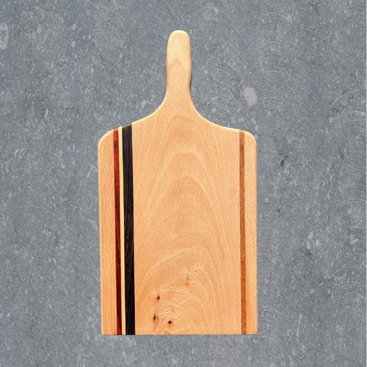 Dimensions : 36 x 21 x 1,6 cm. Planche plus large en Hêtre, Wengé, Frêne et Padouk.